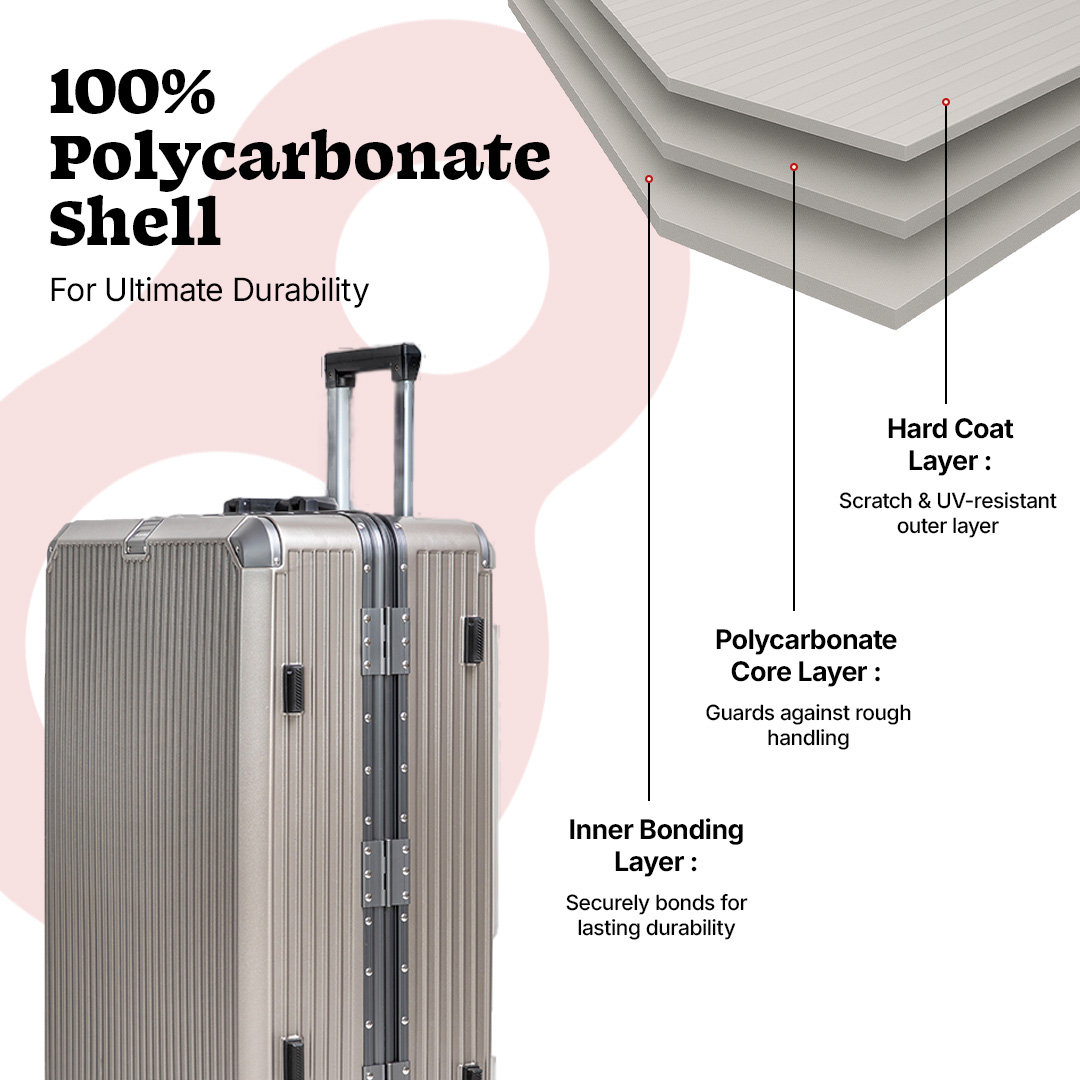 • Vertical-Line Polycarbonate Body: Lightweight yet exceptionally sturdy, Vertica’s 100% polycarbonate exterior offers unparalleled resilience and sleek aesthetics.
